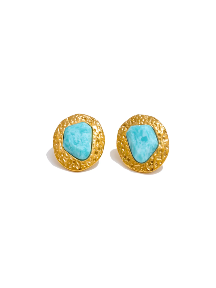 • أقراط بتصميم فنتج مرصع بحجر الأمازونيت.