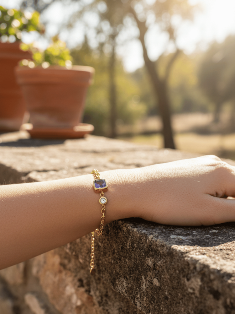 • أسورة بتصميم سلسلة ناعمة مرصعة بحجر زركون بنفسجي.
