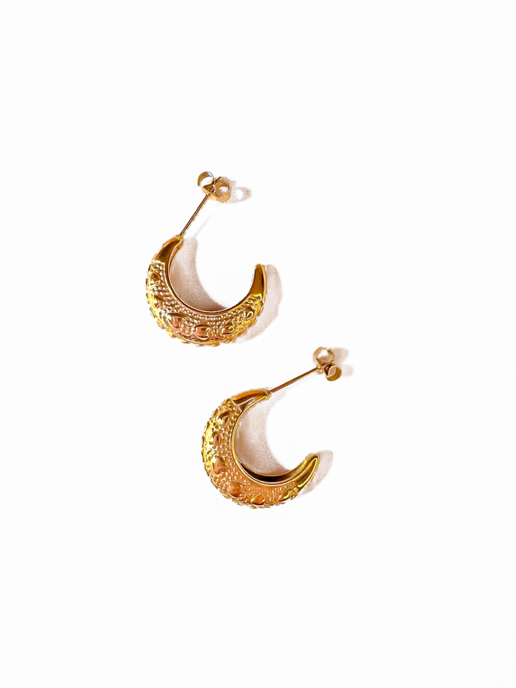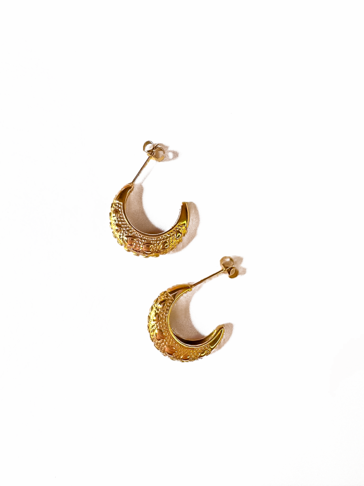 • أقراط أنصاف حلقات بتصميم فنتج.