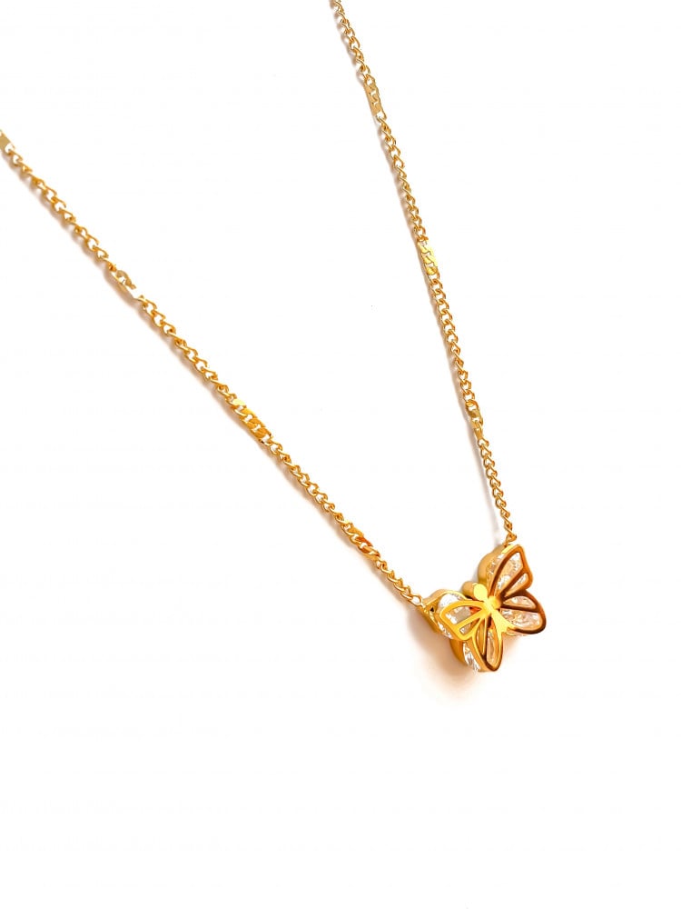 • عقد من السلسلة المربوطة مع تعليقة فراشة مع زركون.