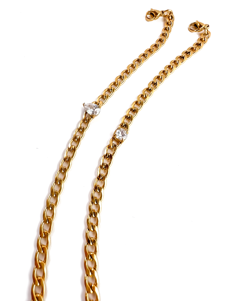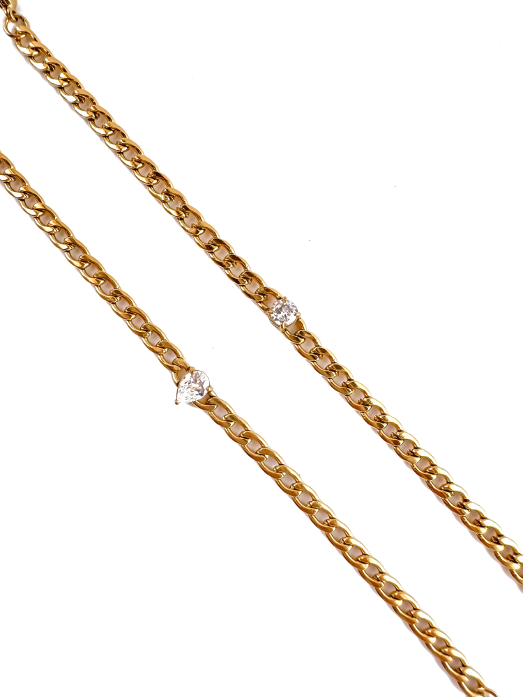 • اسورة من سلسلة فيجارو مرصعة بالزركون شكل دائرة أو قطرة.