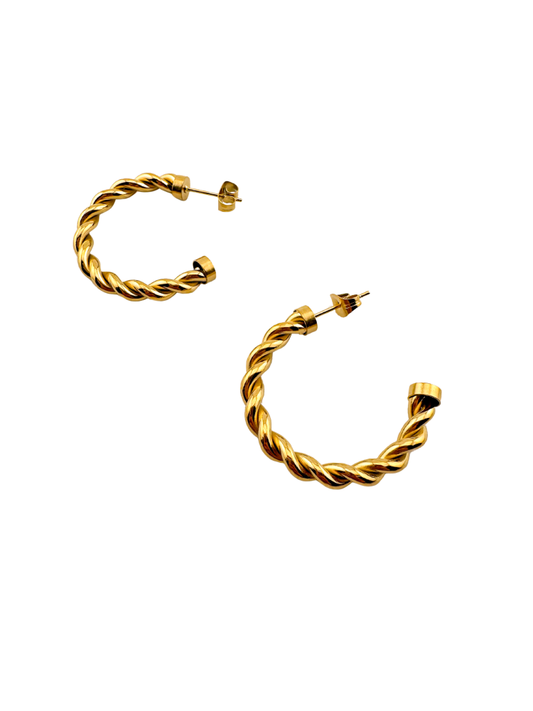 • أقراط نصف حلقة بتصميم حبل ملفوف.