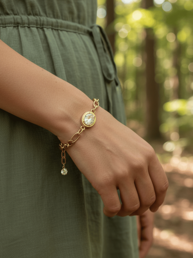 • أسورة بتصميم سلسلة ناعمة مرصعة بحجر زركون ابيض كبير.