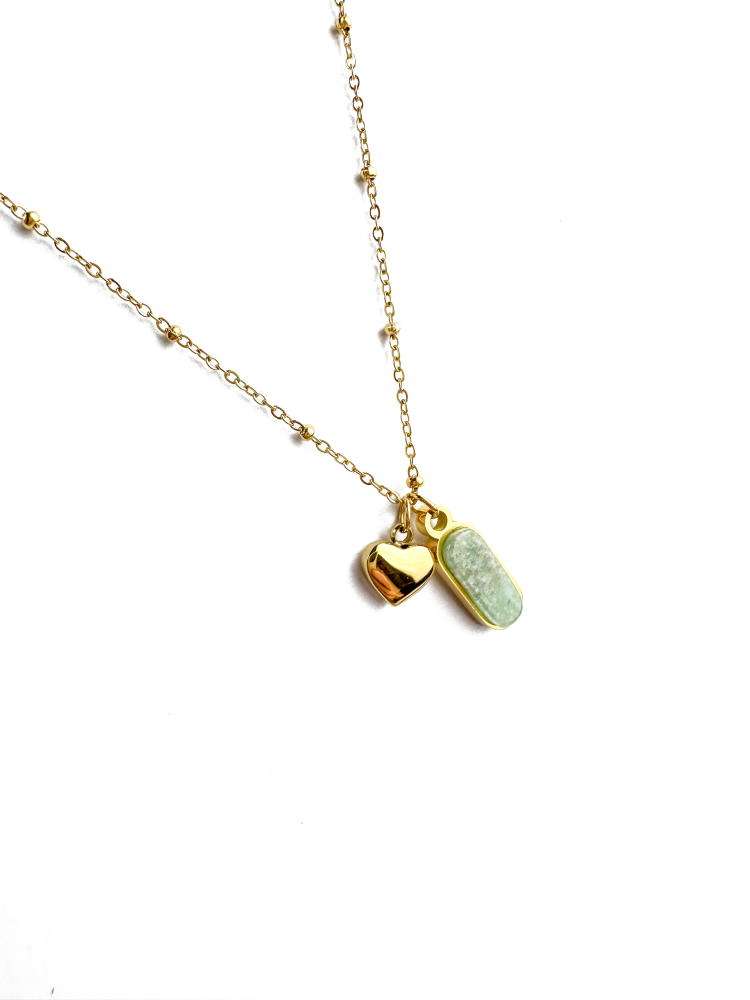 • عقد مع تعليقة حجر تركوازي و تعليقة قلب ذهبي صغير.
