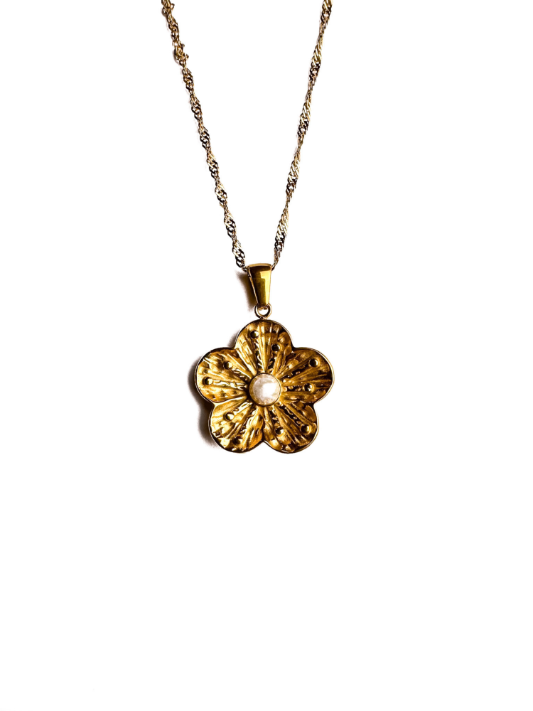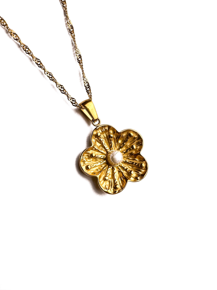 • عقد مع تعليقة وردة مرصعة باللؤلؤة.