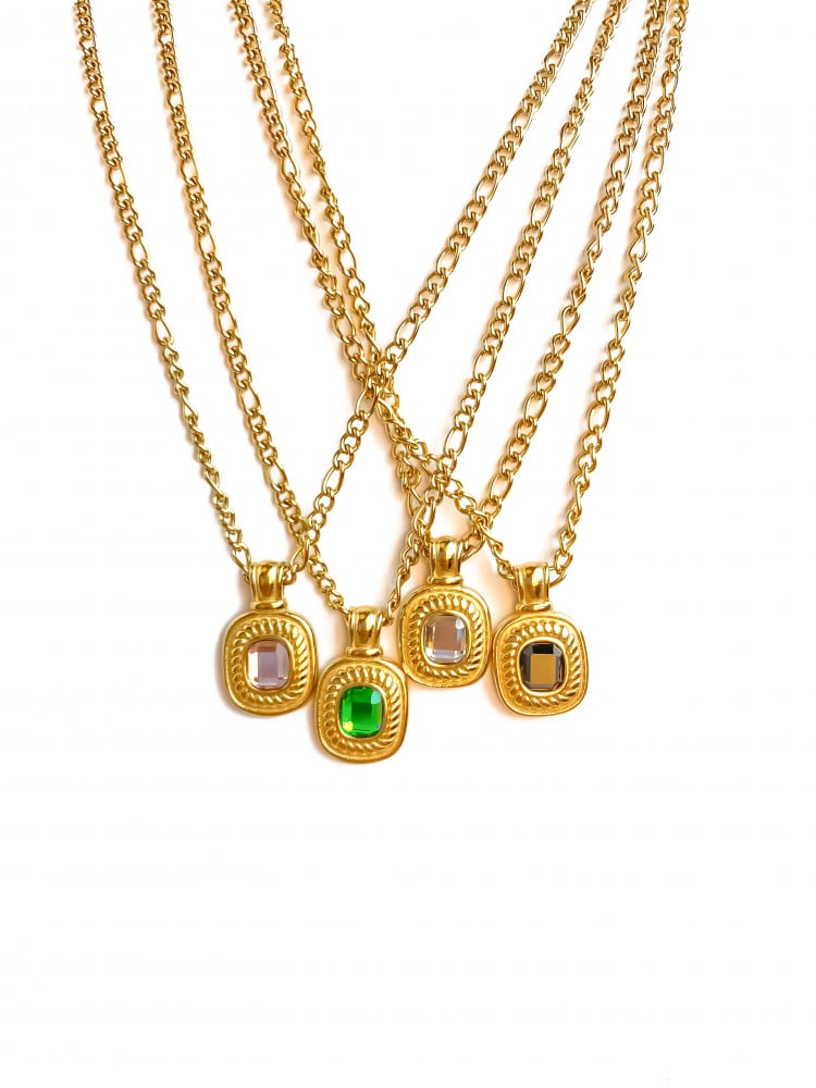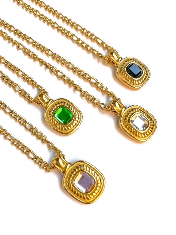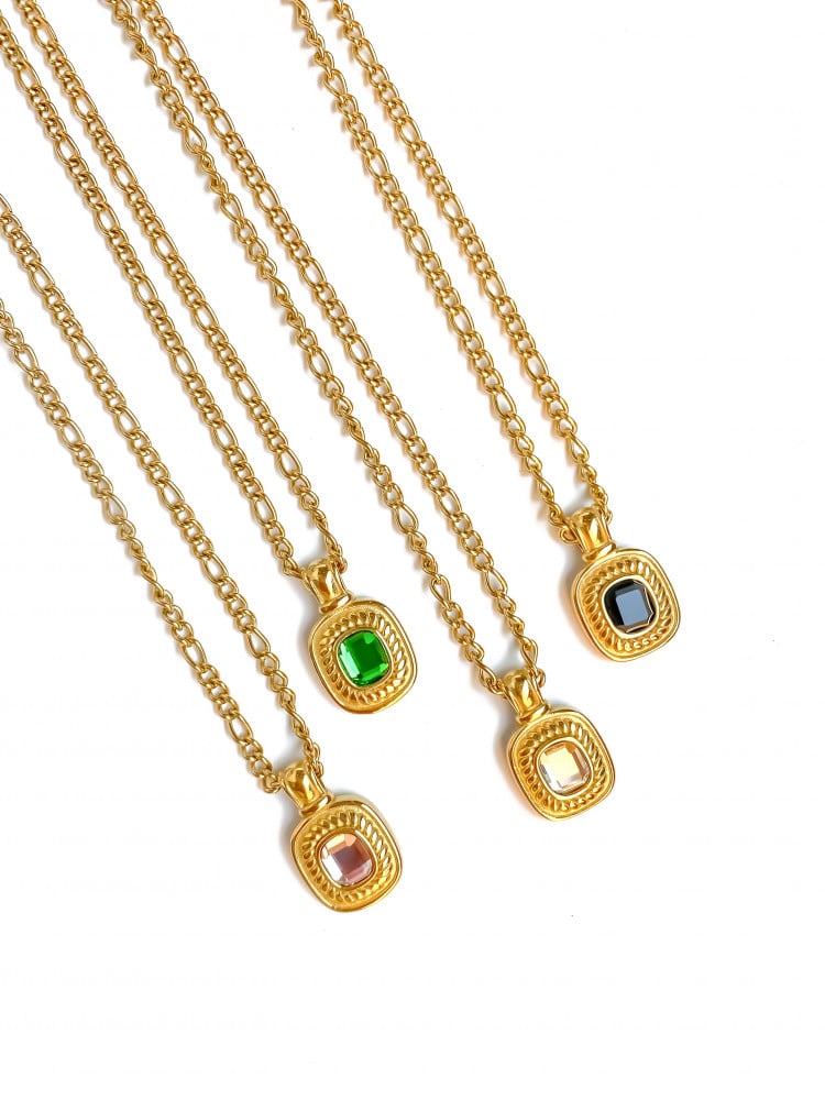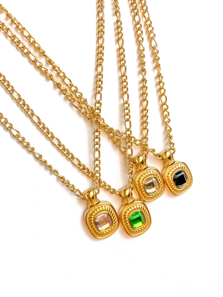 • عقد من سلسلة فيجارو مع تعليقة زركون مميزة بلون من اختيارك.