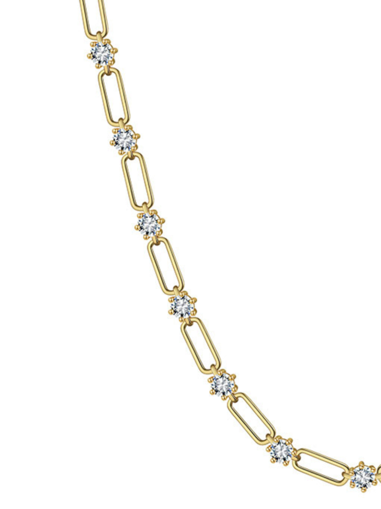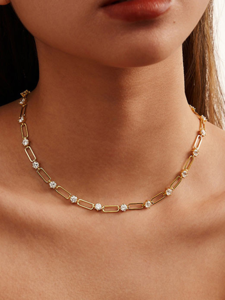 - سلسال فضة مطلي بالذهب عيار 14 قيراط بتصميم المشبك ، و مرصع بالزركون.