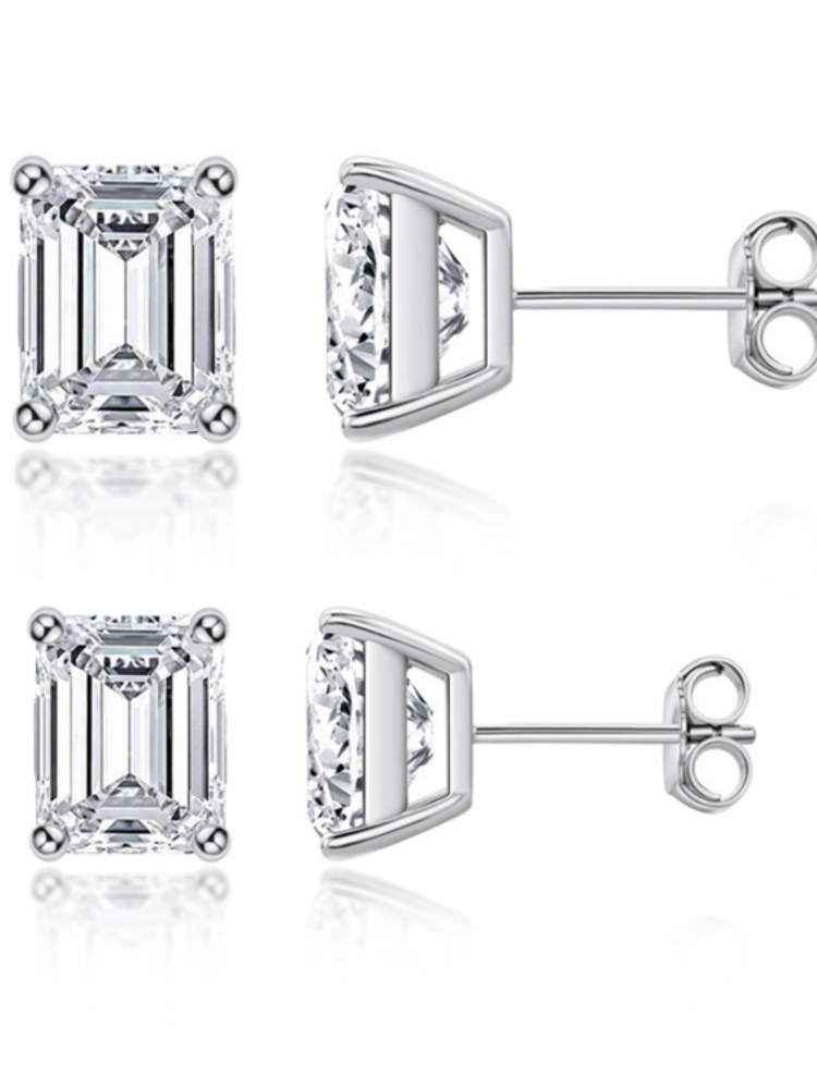 - فضة عيار S925 مطلي بالروديوم 3 طبقات مع حجر الزركون المستطيل اللامع.