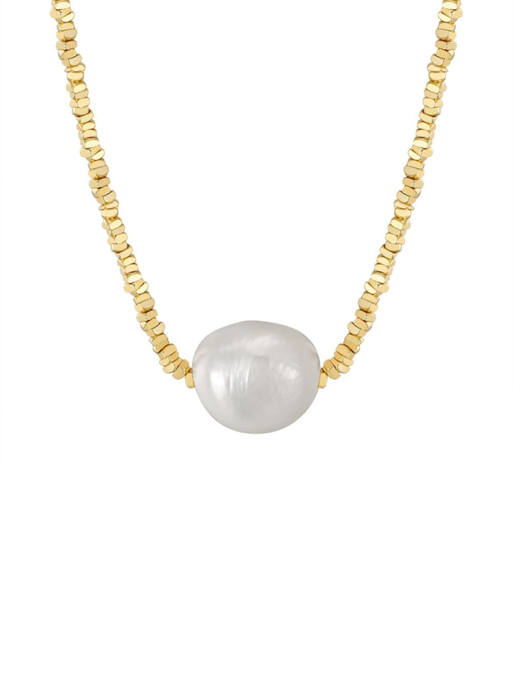 - سلسال فضة مطلي بالذهب عيار 14 قيراط و مرصع بلؤلؤ المياه العذبة المستزرعة.