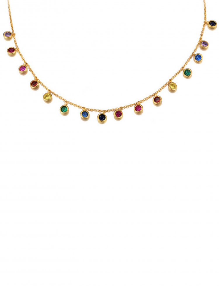 - سلسال فضة مطلي بالذهب و مرصع بالأحجار الملونة اللامعة.