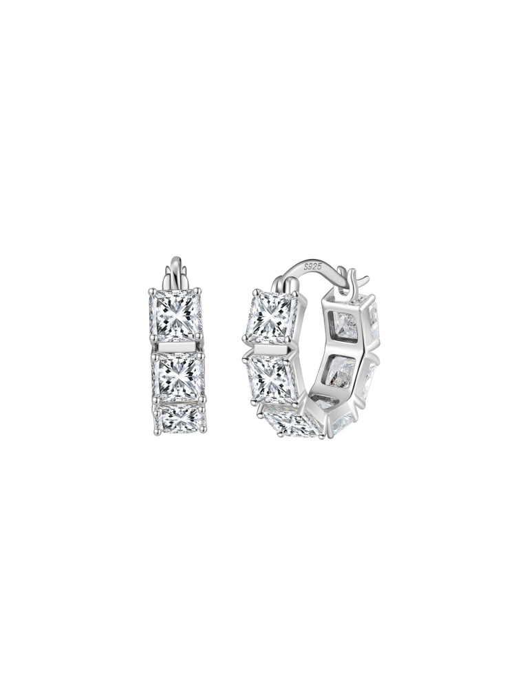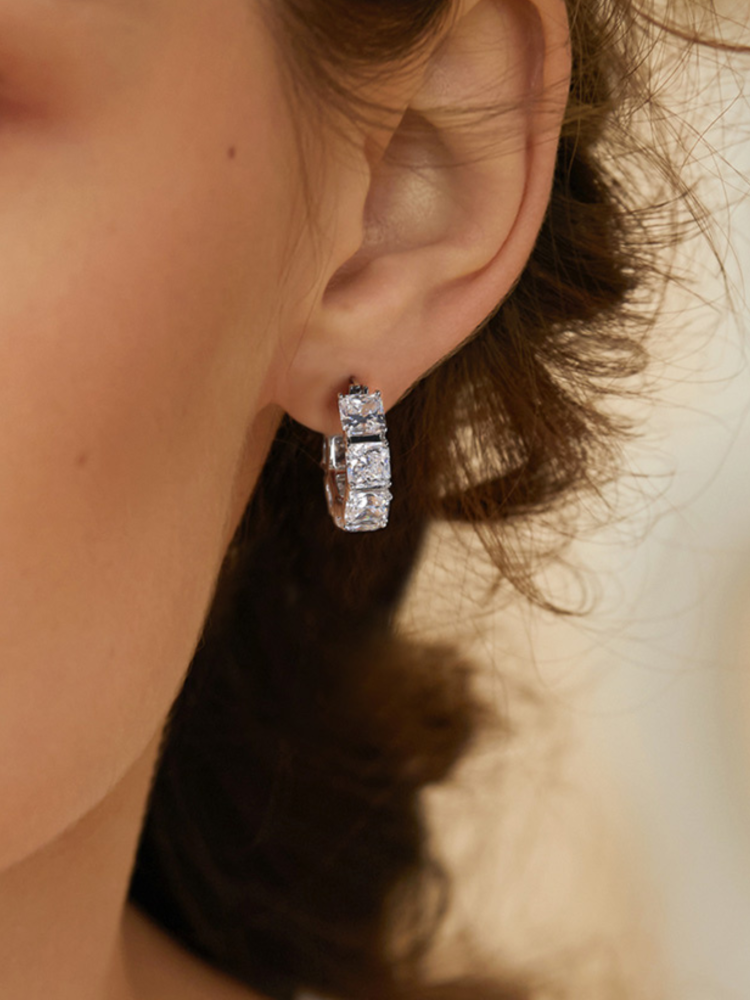 - أقراط حلقة دائرية تصميم تنس مرصعة بأحجار الزركون قصة المربع.