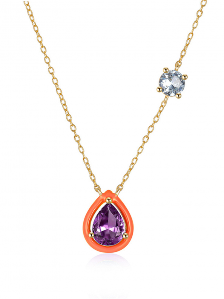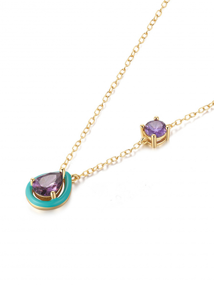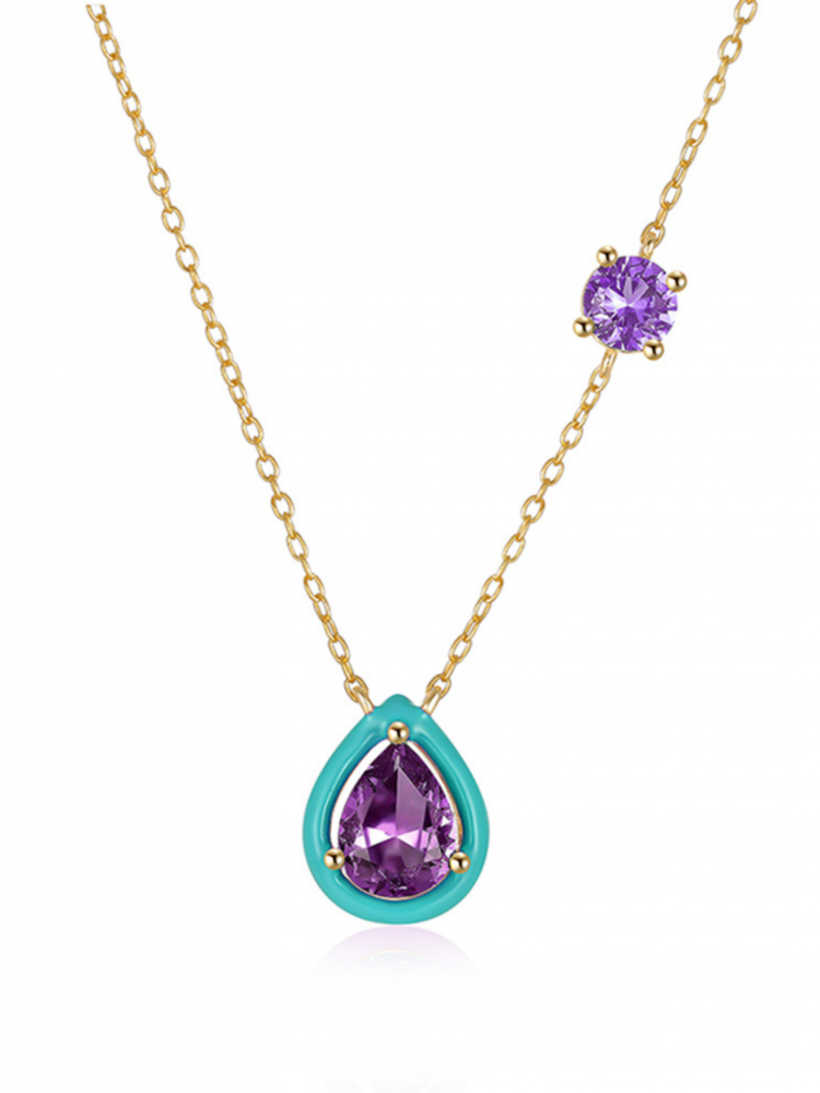 - سلسال فضة عيار S925 مطلي ثلاثة طبقات بالذهب عيار 14 ، مرصع بأحجار الزركون الملونة و مزين بالمينا الملونة.