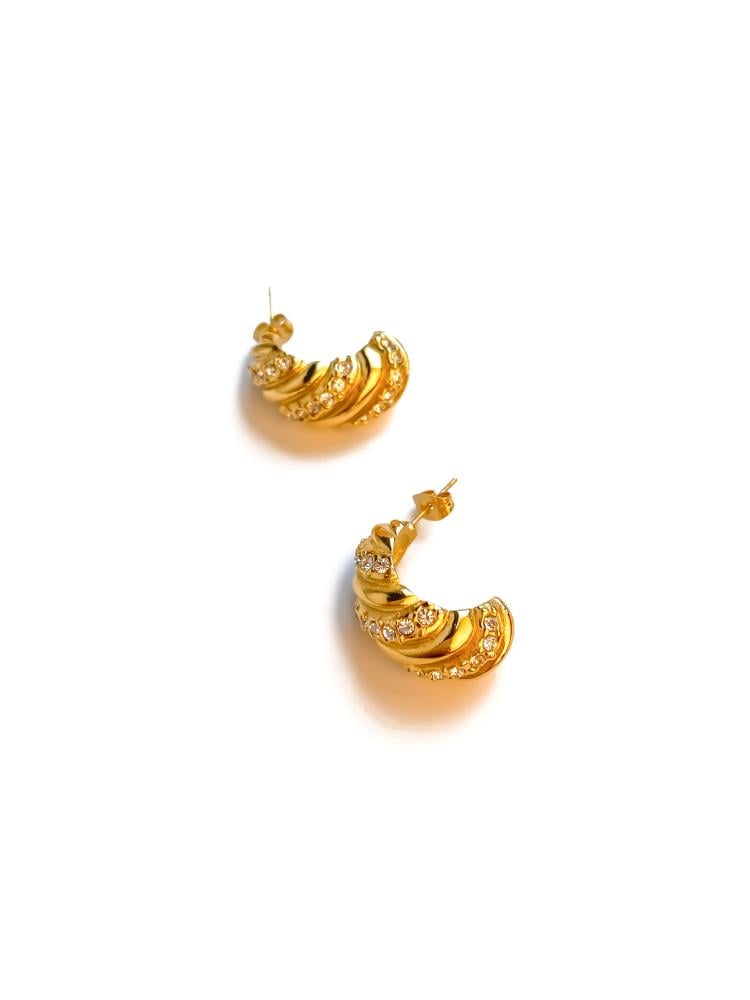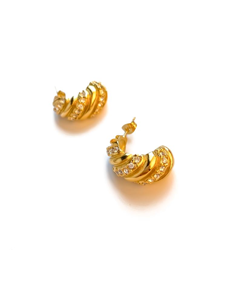 • أقراط قبة كرواسون ذهبية مرصعة بالزركون.